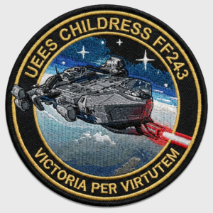 The ship earned a “Combat Star” during the Skirmish at Oberon (2903). While escorting a civilian relief convoy, the Childress was ambushed by a Vanduul “Void” bomber wing. Despite sustaining heavy damage to her starboard hangar bay, the Childress successfully deployed her squadron of Gladius fighters and used her massive spinal mount to shatter a Vanduul Corvette, forcing the enemy to retreat. This action saved over 4,000 colonists aboard the transport ships.