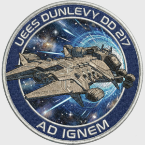 In 2908, during the Battle of the Orion Nebula, the Dunlevy famously engaged a Vanduul Kingship’s escort flotilla. While she could not match the Kingship alone, her turrets created a flak corridor so dense that it allowed a retreat for the devastatingly damaged carrier UEES Paul Steed. The Dunlevy took two torpedo hits to the engineering section during the retreat, venting 30 crew members into the void, a tragedy that is still commemorated by a plaque on the Engineering deck.